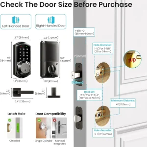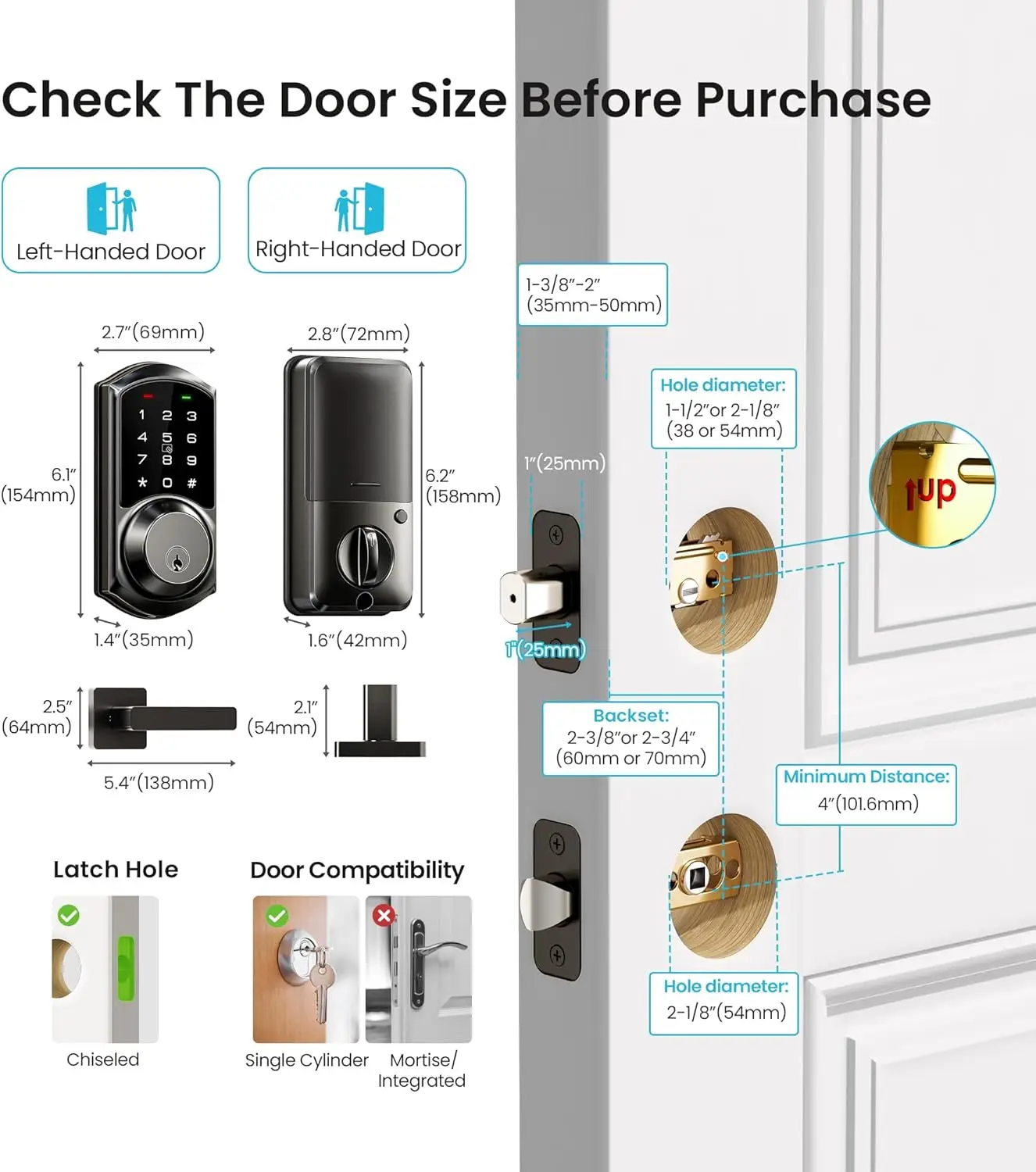 - Remote Control: Paired with G2 wifi gateway (sold separately) , smart locks for front door seamlessly integrates with smart home, allowing you to view real-time access logs, voice control of your front door lock with Alexa and Google assistant, monitor battery level and check the electronic door lock status at any time even if you are already in bed or working
