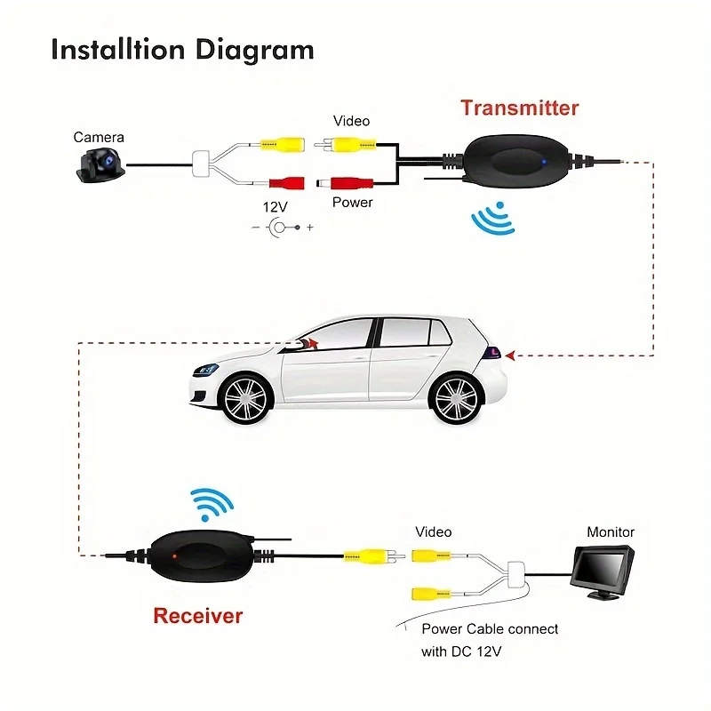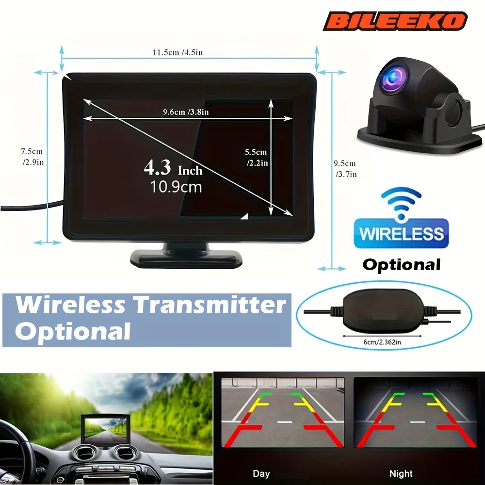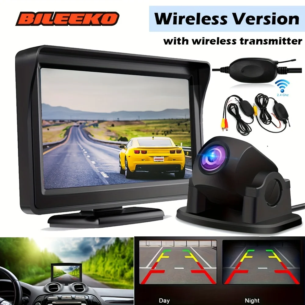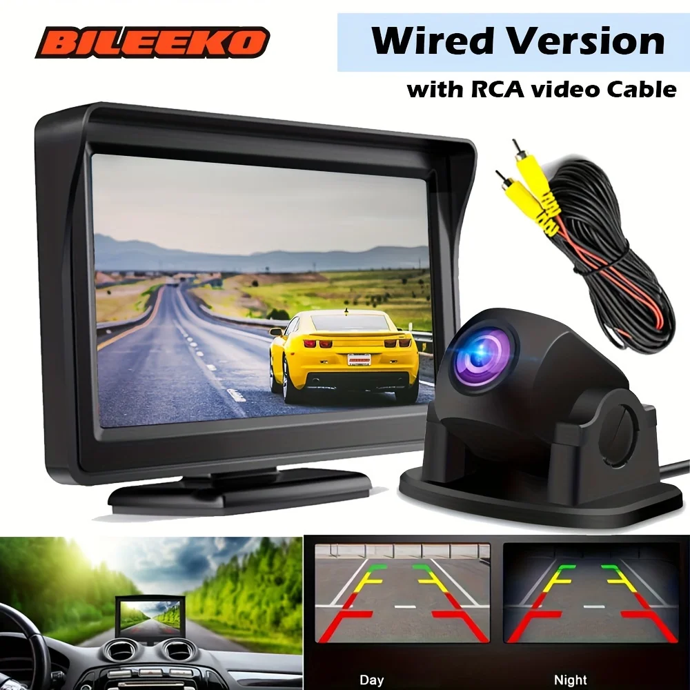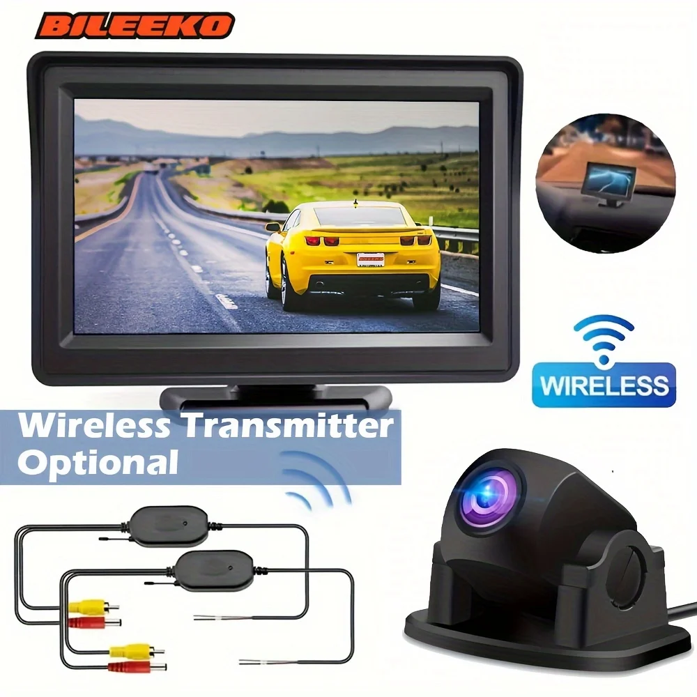 Car Backup Rear Camera Monitor Kit with Rearview Camera Reverse Parking Assistant System for Pickup, RV, Trucks, SUV-Wired/ Wireless Transmitter Optional